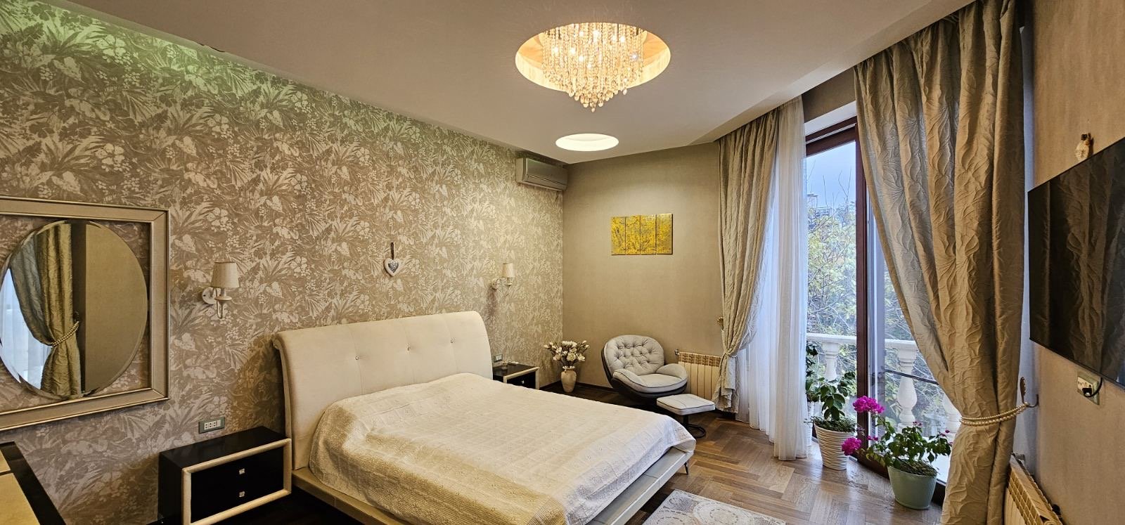 Стильный дом с большим участком на 13 Фонтана | вид Моря¡ К аренде предлагается просторный дом в закрытом кооперативе на 13-й станции Фонтана. Участок – 8 соток, ухоженный, с зелеными насаждениями. Дом общей площадью 500 кв. м. включает 4 уровня: 5 комнат, кухня-столовая с выходом к беседке и зоне барбекю, 4 спальни, 4 санузла, 2 гардеробные. В цокольном этаже находится комната отдыха, инфракрасная сауна. Мансардный этаж с видом на море оборудован зоной отдыха и гостевой комнатой. Полы на цокольном и первом этажах с подогревом, высота потолков в подвале — 4 метра. Дом полностью укомплектован мебелью и современной техникой, оснащен системой кондиционирования, круглосуточной охраной и видеонаблюдением. Парковка рассчитана на 3 автомобиля. На Длительно: 2 500$ На Лето 3 200$ Можливо з дітьмиТак Можливо з тваринамиТак Сауна Тип об'єктуБудинок Id оголошення707069 Поділитися |